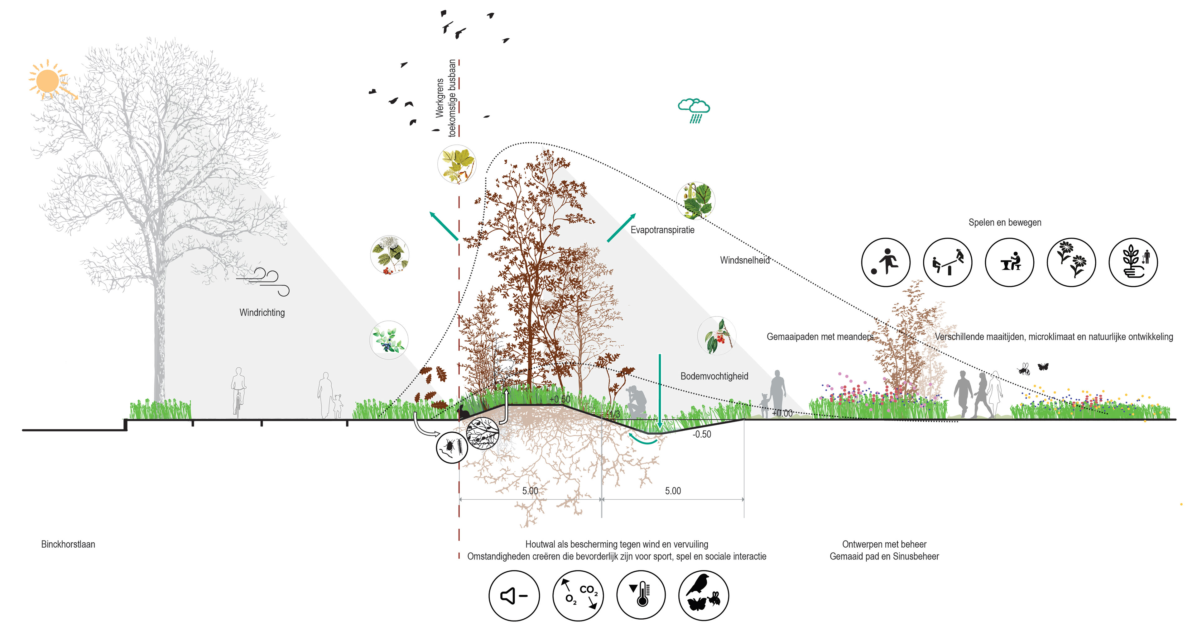 Planting principle: structuring linear forests, microtopography and ecological management of areas.