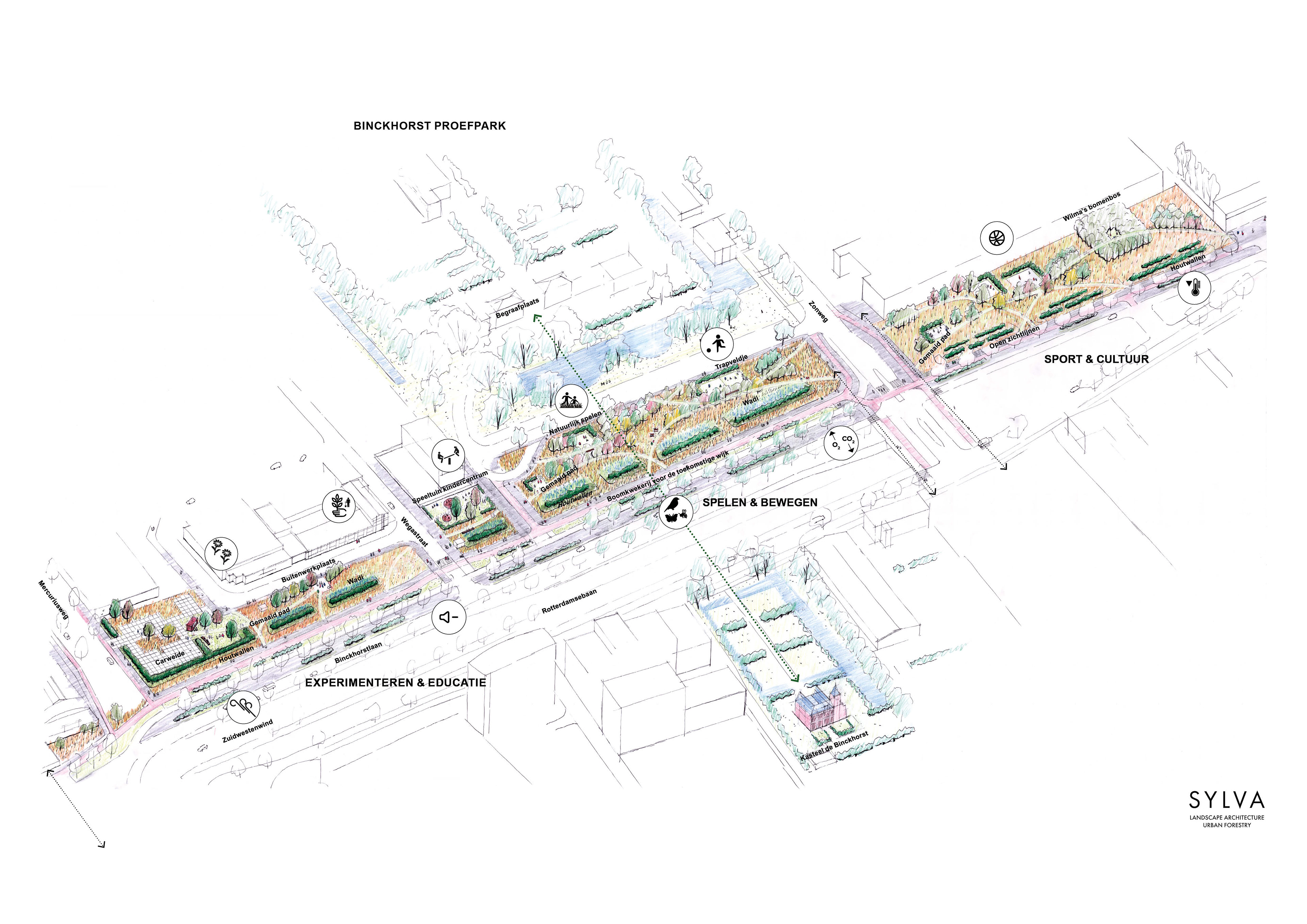 Binckhorst was once a large industrial port zone and since 2016, it is gradually being transformed into a place to live and work. This park is a new impulse in the natural development of the district, including tree nurseries, ecological, sports and cultural areas.